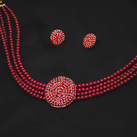 Round 4 Layered Necklace Set - Maroon