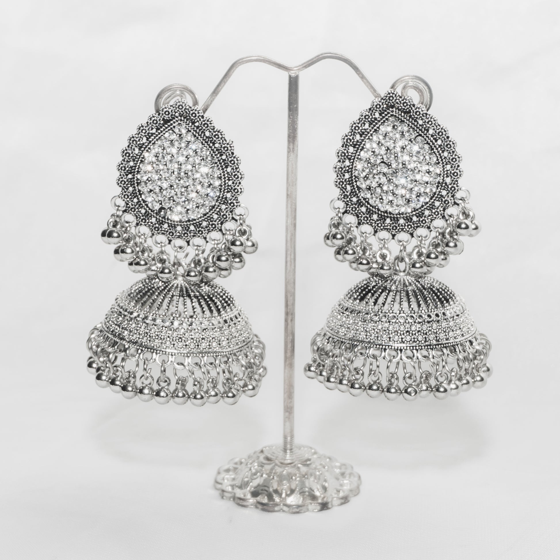 Drop Antique Nagina Jhumka - Silver
